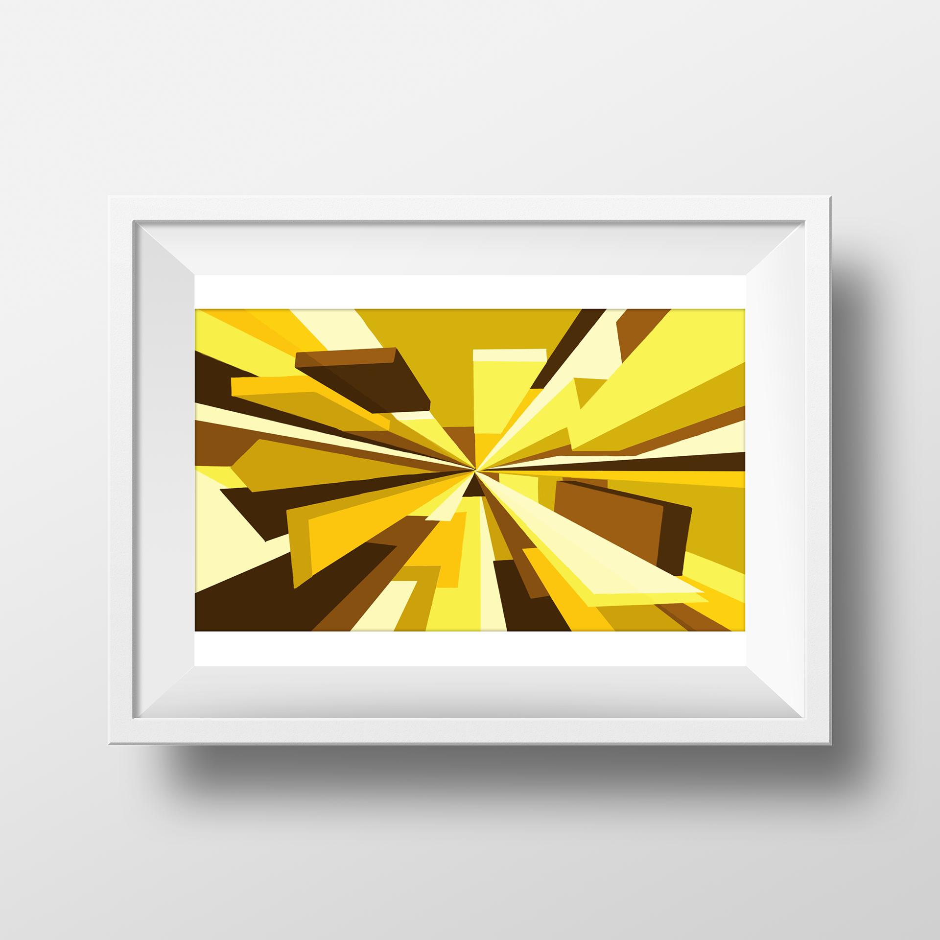It is the psychology of color and shape design. The colors are yellow dark yellow and browns. Such as, like bright and darker colors. There are lots of angular and cubic shapes. It gives emotion to describe something going fast and passing very quickly. The software I used is Adobe Photoshop CC. The tools were used brush tools and paint each different shapes and colors.