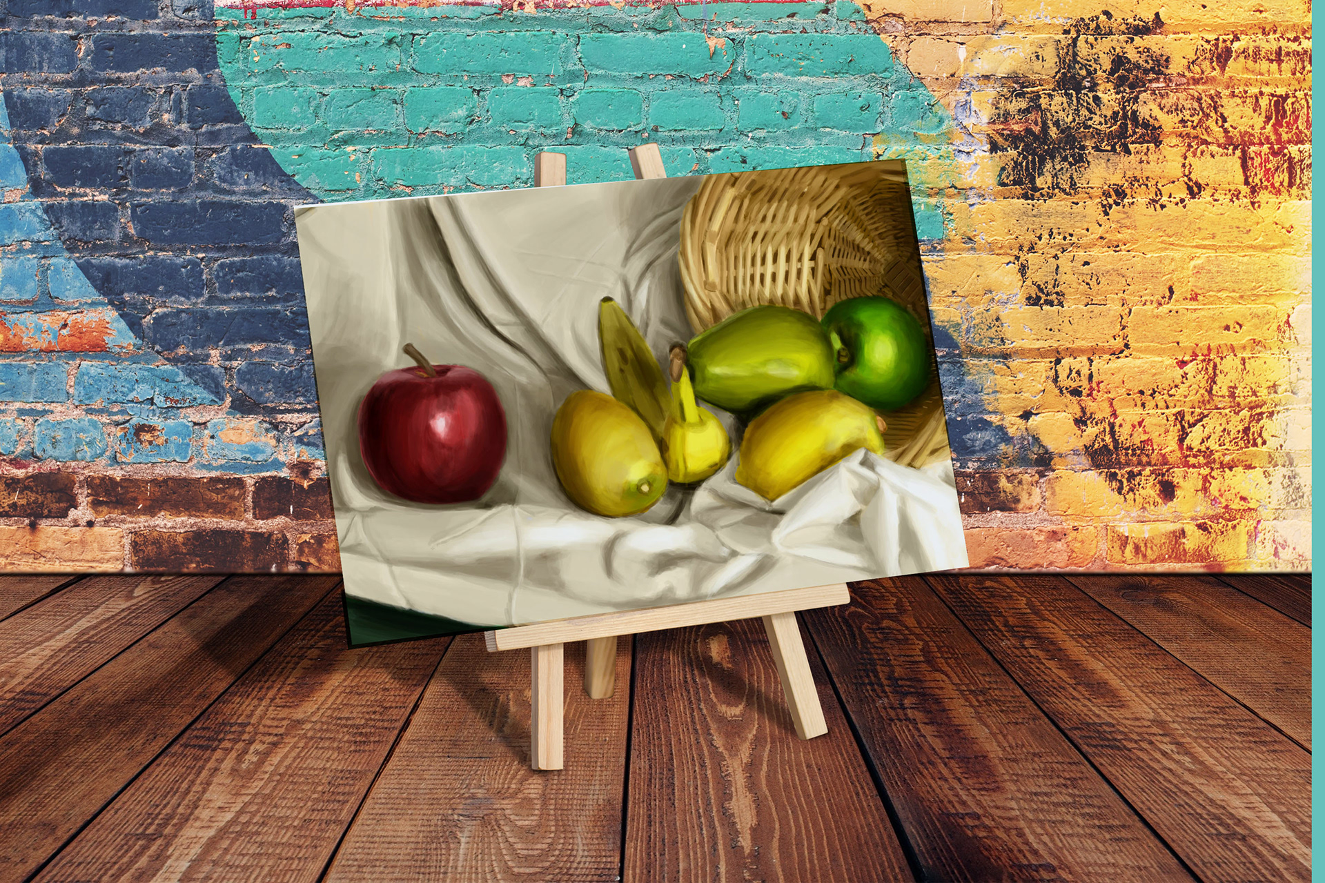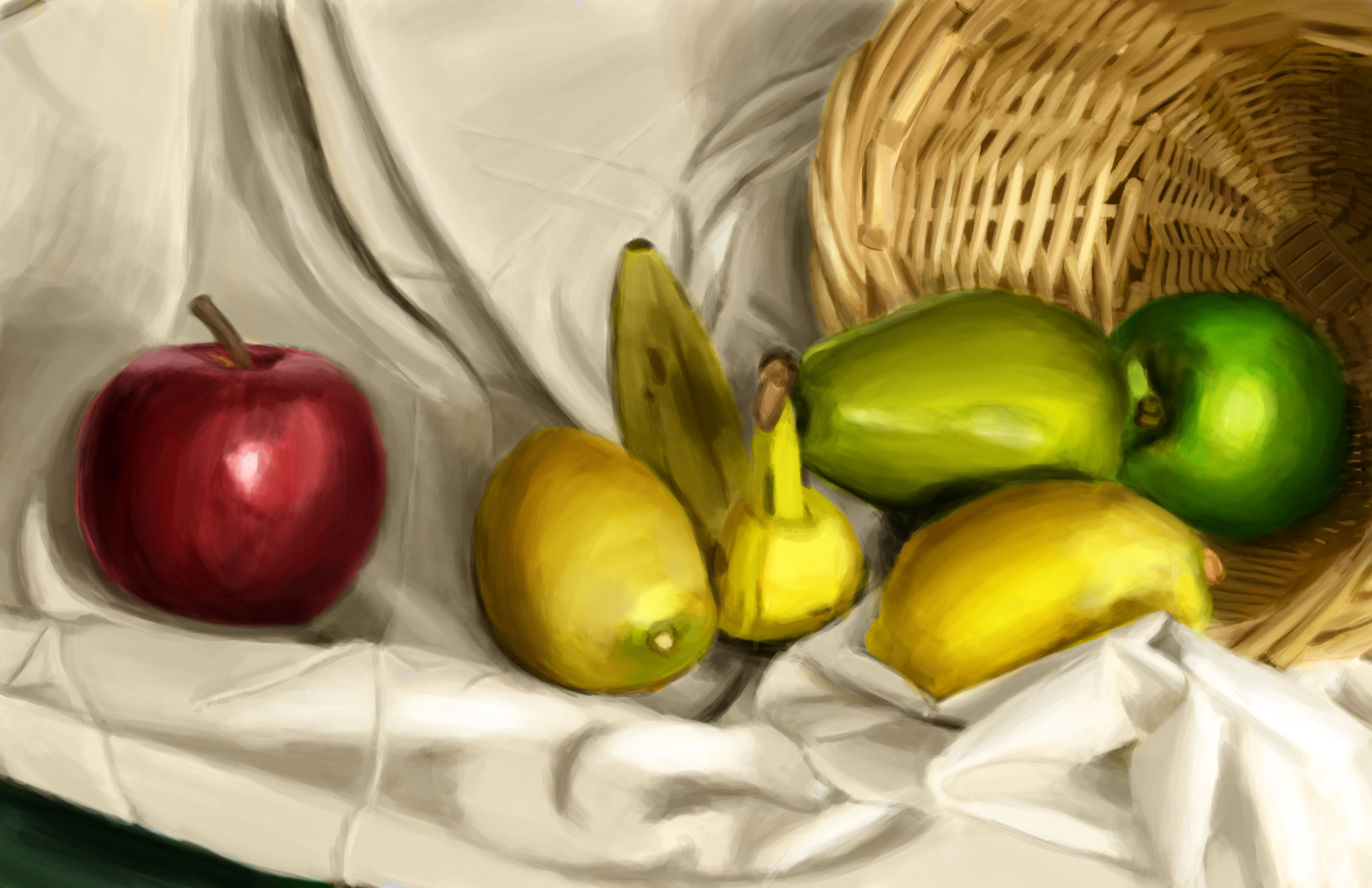 It is still life of Fruits and basket. The software used on Adobe Photoshop CC. The tools I used is brush tool.