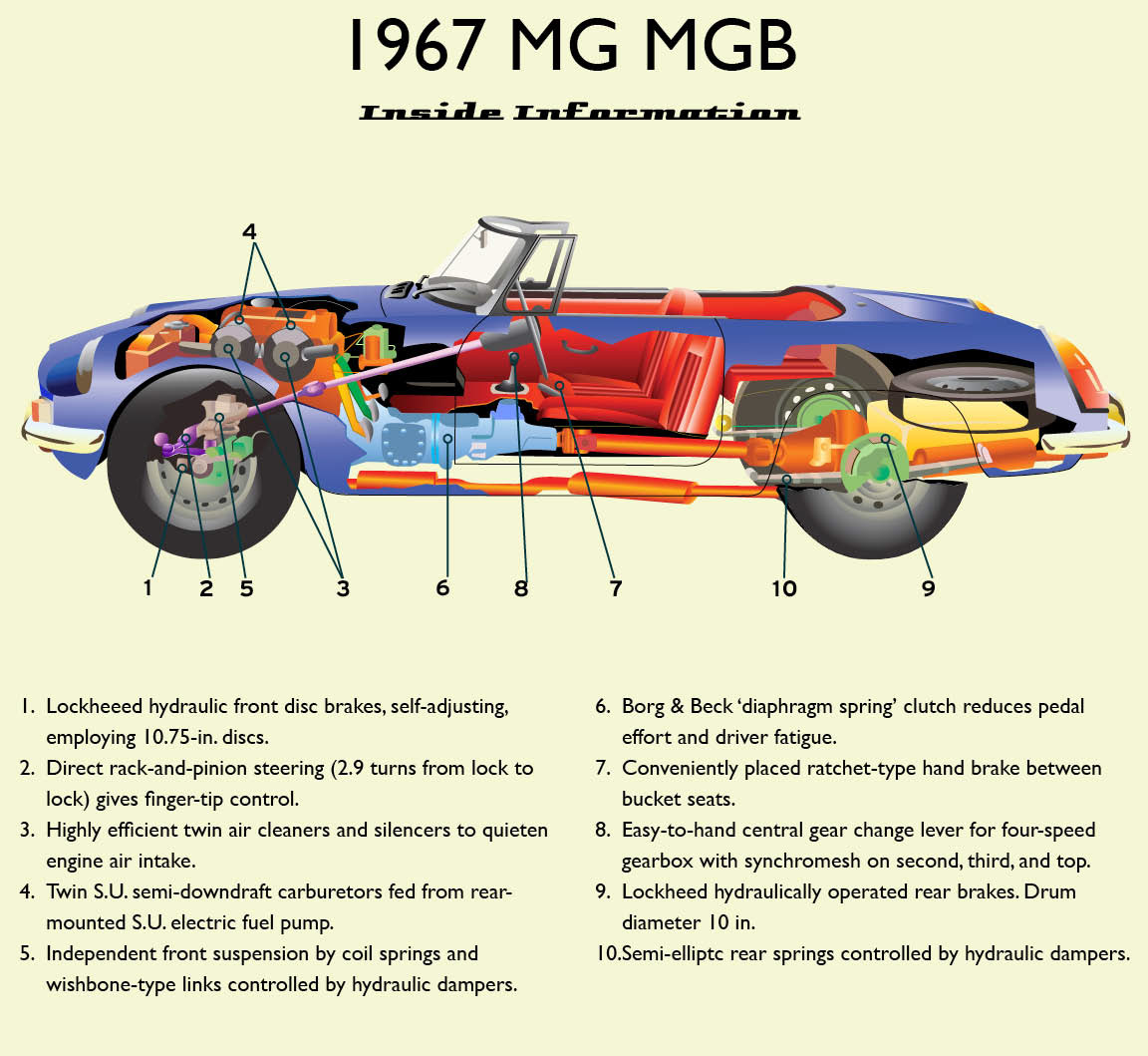 This is cutaway illustration of 1967 MGB roadster.