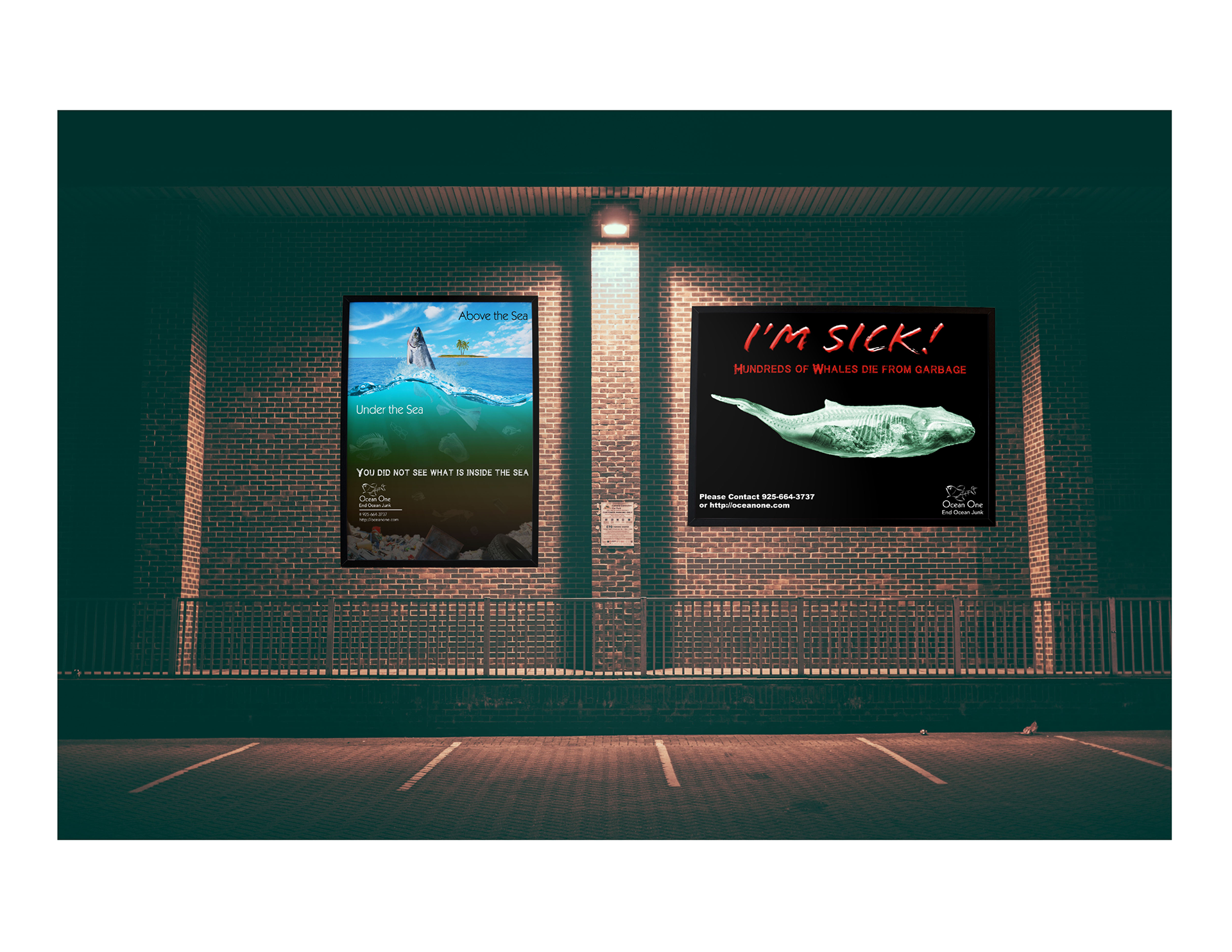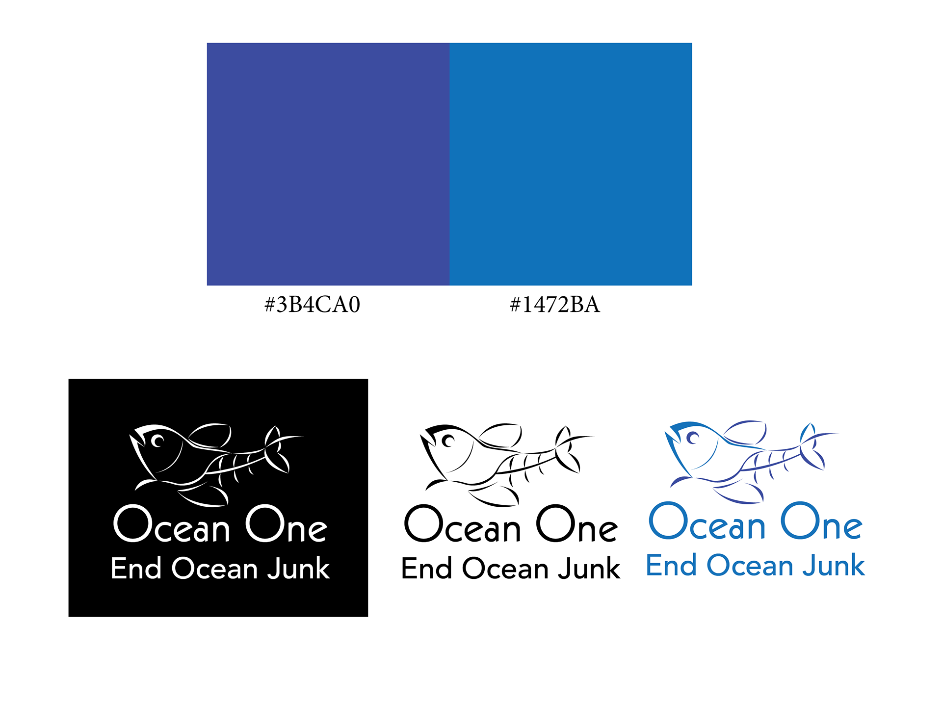 The Ocean is being polluted by garbage. There are millions of garbages found in the ocean. Fishes and sea creatures are dying because of the garbage. We need to campaign to stop dumping into the ocean. So, I designed for the cause. "Ocean One", that means Ocean is only one, we must save it. The half fish and half bone between the waterline logo conveys the message, "Are you going to save them or let them die?" in addition to, "Ocean creature is dying, we must save them". The tagline, "End ocean junk", means no more dumping into the ocean.