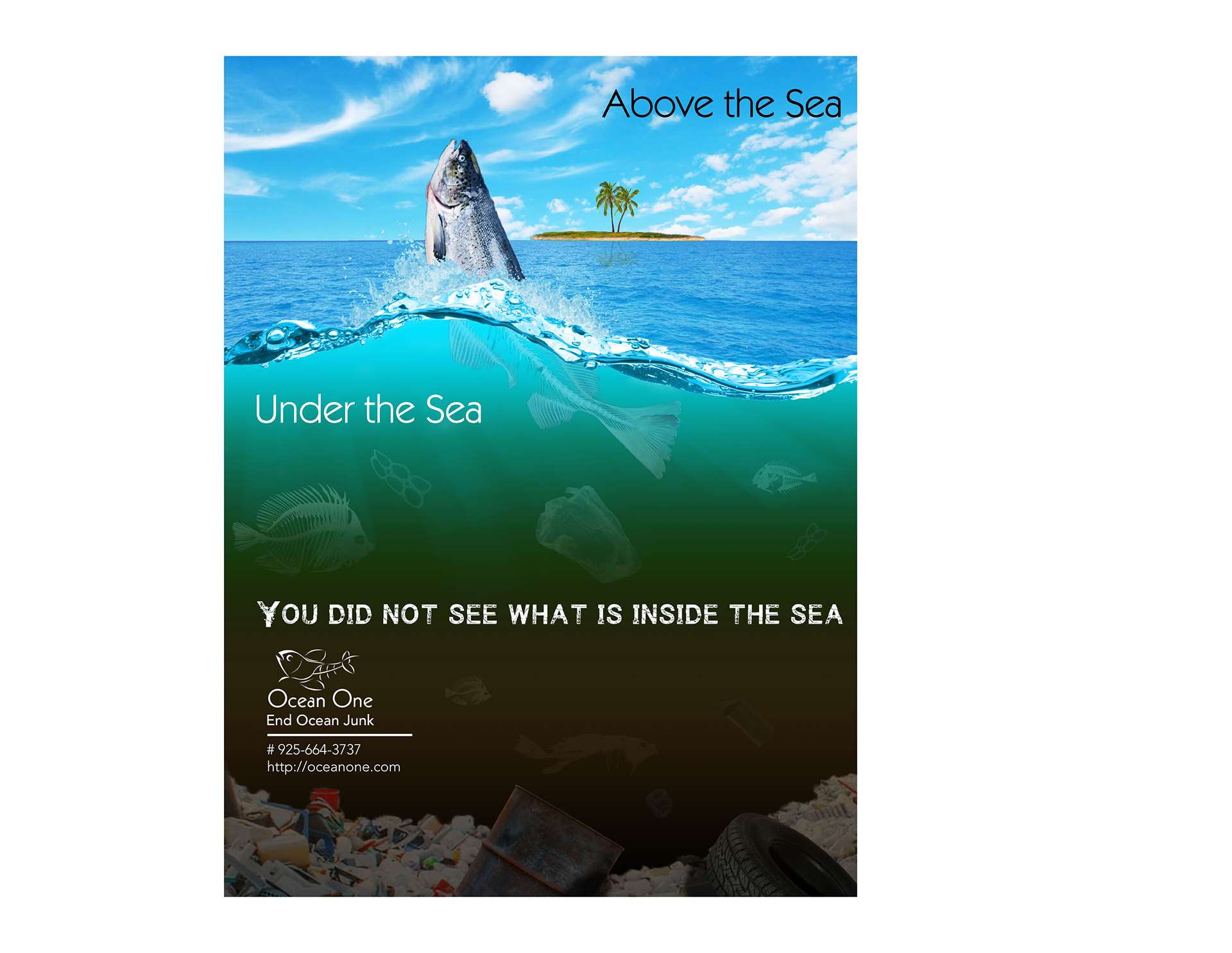 I made Ocean one campaign poster I made with Photoshop CC. It describe not all blue ocean is clean.