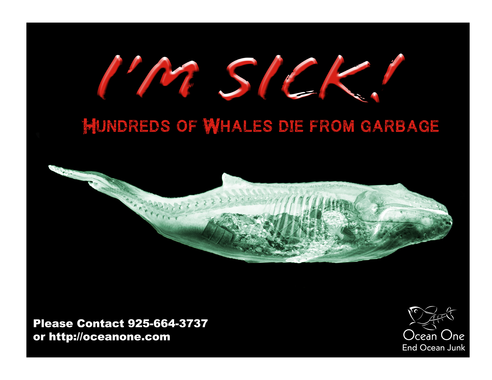 This is another poster that I made on Photoshop CC. I heard lots of whales died because they ate garbages. So, I use that idea and I made what's inside whale's body with X-ray.